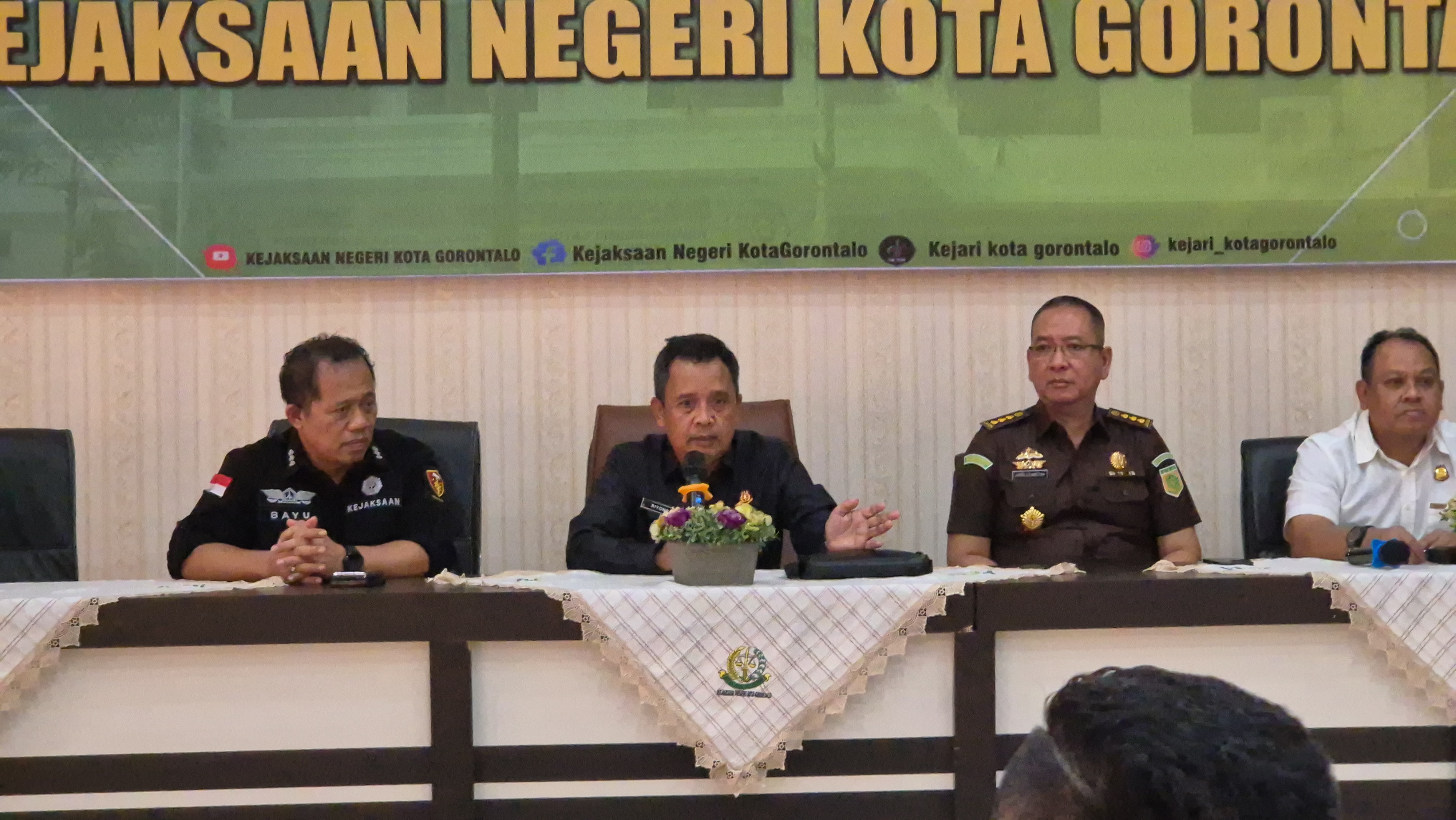 Kepala Kejaksaan Tinggi (Kajati) Gorontalo, Riyono, S.H., M.Hum, melaksanakan kunjungan kerja ke Kejaksaan Negeri Kota Gorontalo. Dalam kunjungan tersebut, Kajati Gorontalo didampingi oleh Asisten Pembinaan, Asisten Intelijen, serta Kepala Bagian Tata Usaha (Kabag TU) Kejaksaan Tinggi Gorontalo.